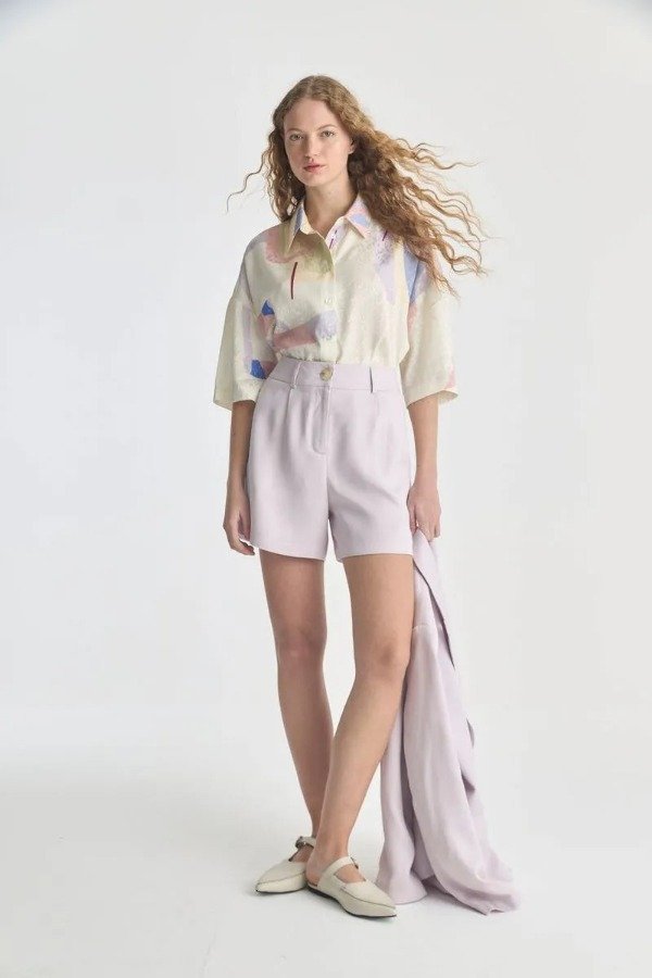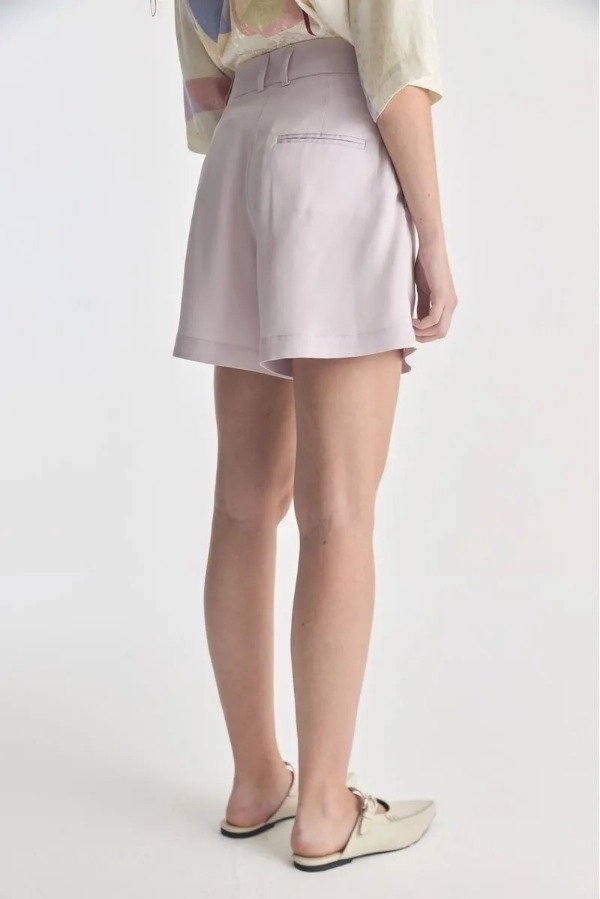 Bermda de tencel twill, tiro alto con boton en cintura y bolsillos laterales. Lleva pinzas en frente y largo arriba de la rodilla. Este articulo es 100%tencel