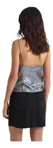 Top de calce regular con escote embolsado asimétrico y breteles finos.