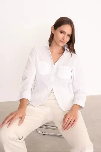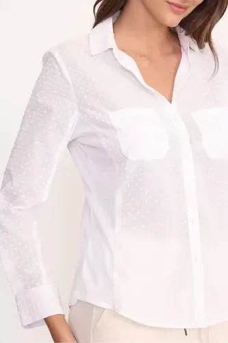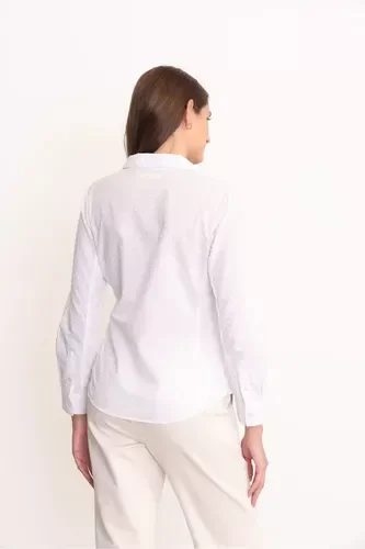 Fabricada en suave algodón, la camisa ofrece una sensación agradable al tacto y una excelente transpirabilidad, ideal para climas cálidos o para llevar en capas durante las temporadas más frescas. Su corte slim resalta la figura femenina, brindando un toque de sofisticación sin sacrificar la comodidad.