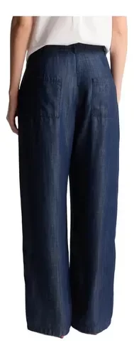 Jean de calce sastrero, tiro bien alto, pinzas delanteras y detalle de cintura corrida. Es un producto de lyocell, lo cual lo hace parte de la colección des c